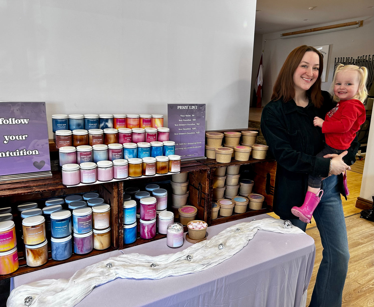 Welcome to Intuitive Violet, I'm so happy you're here! My name is Sarah and this is my beautiful daughter, Violet (the inspiration of it all!). My small business is a one woman show and is home-based in the small town of Meaford, Ontario!
