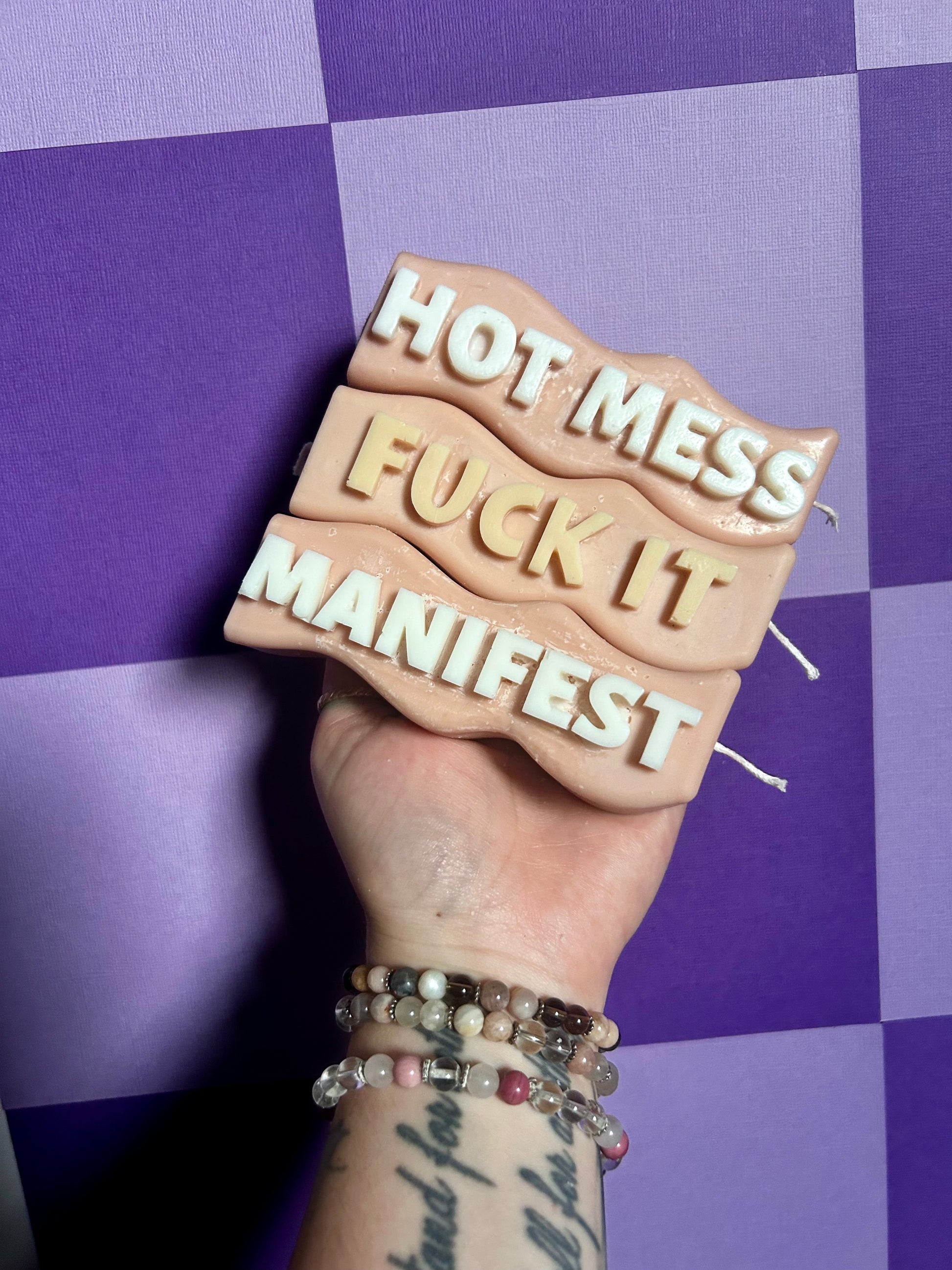 Light it with intention, babe. Our “manifest” candles features an elevated wave design and empowering message to help you align with your goals, dreams and highest self. Whether you’re scripting, meditating or simply setting the mood - this candle is your go-to for good energy!