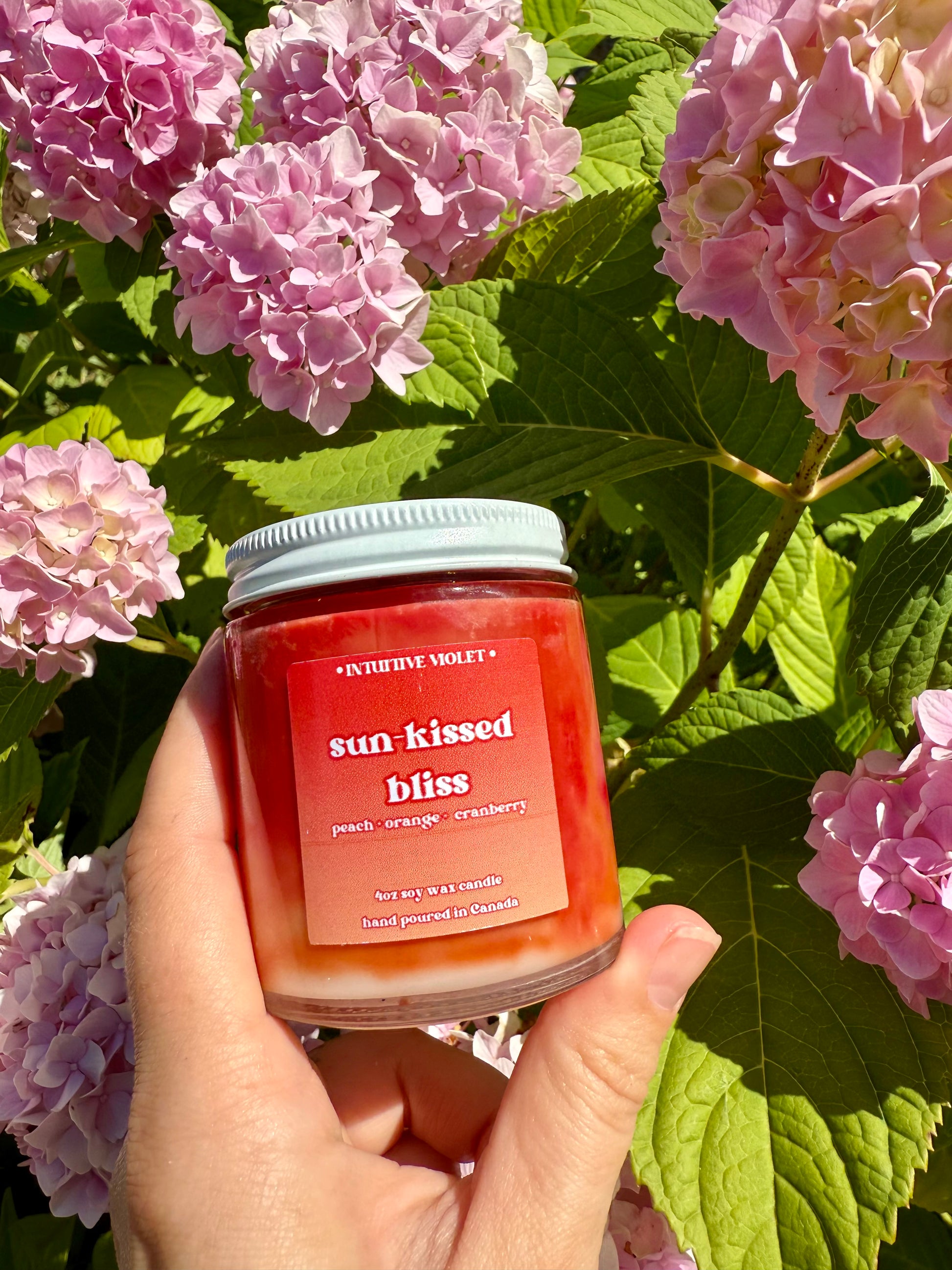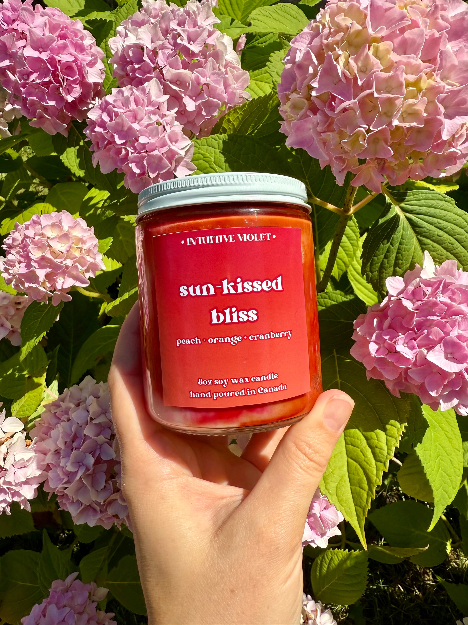 Soak up the last rays of summer with “Sun-Kissed Bliss”, a juicy, radiant blend of ripe peach, zesty orange, and tart cranberry. It’s sweet, citrusy, and just the right amount of bold—like golden hour in a jar. One whiff = instant summer glow. Light it up and let the good vibes linger!